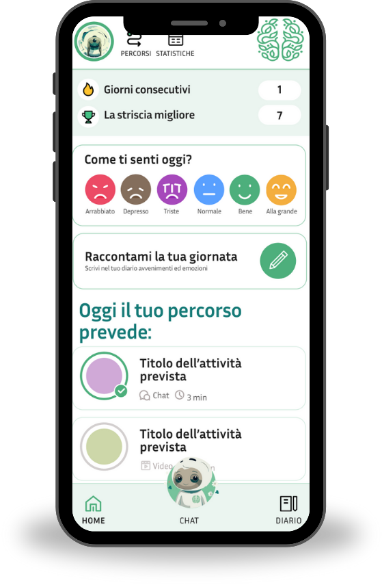 Combina tecniche terapeutiche efficaci e intelligenza artificiale per guidarti verso percorsi personalizzati di self-therapy, costruiti sulla base delle tue emozioni e del tuo vissuto.
