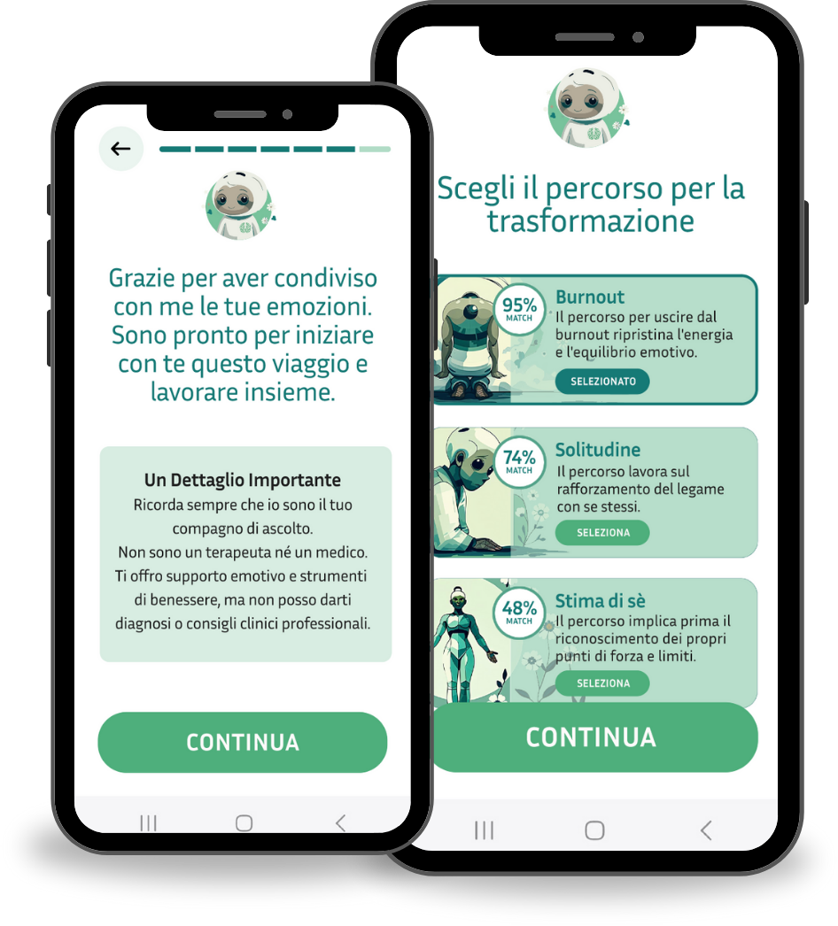 All’interno dell’app, le persone trovano percorsi guidati di self-therapy ed esercizi pratici per gestire emozioni, carico di lavoro e momenti critici, in autonomia e con continuità.